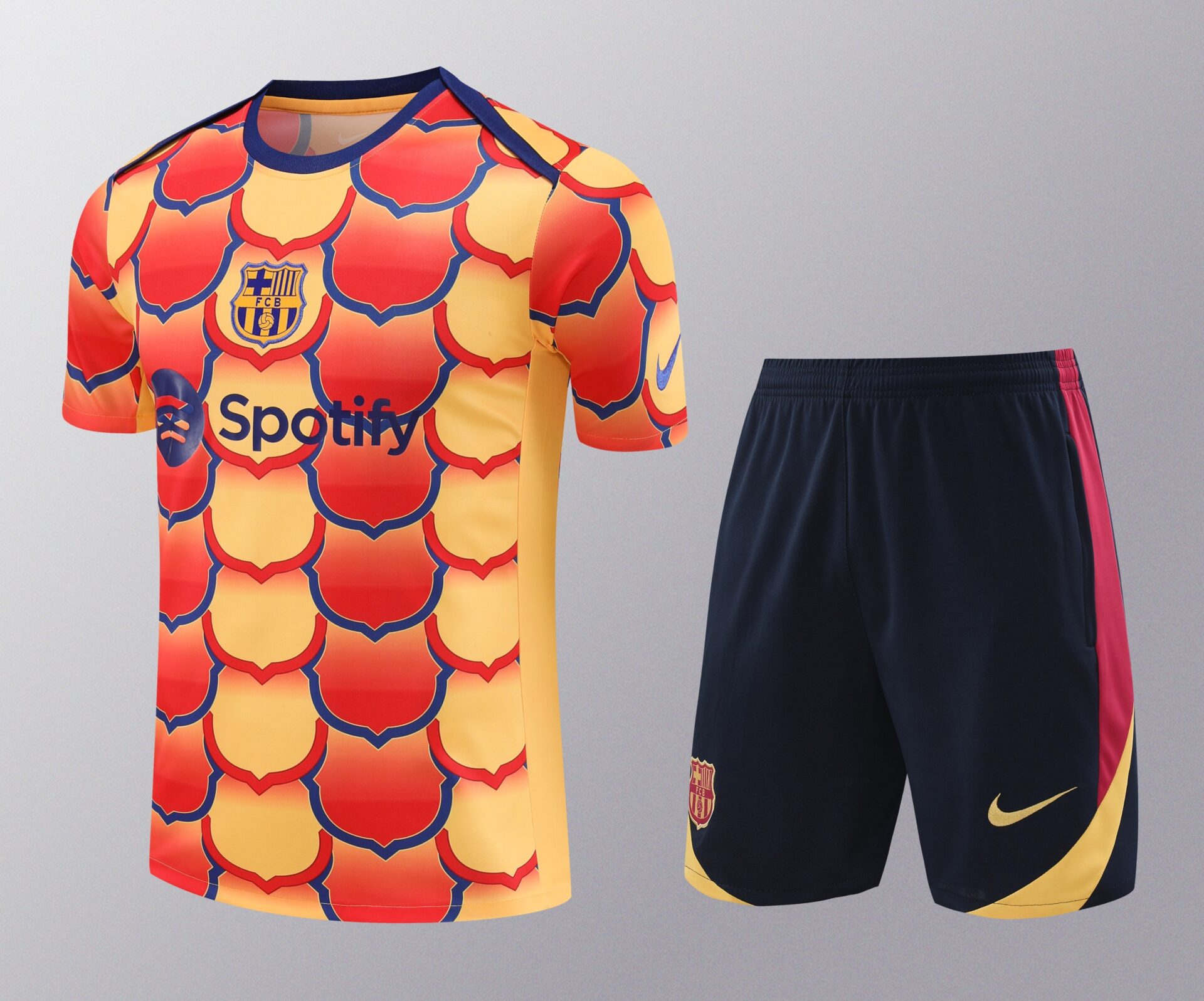 Conjunto de calentamiento FC Barcelona amarillo y naranja escudos