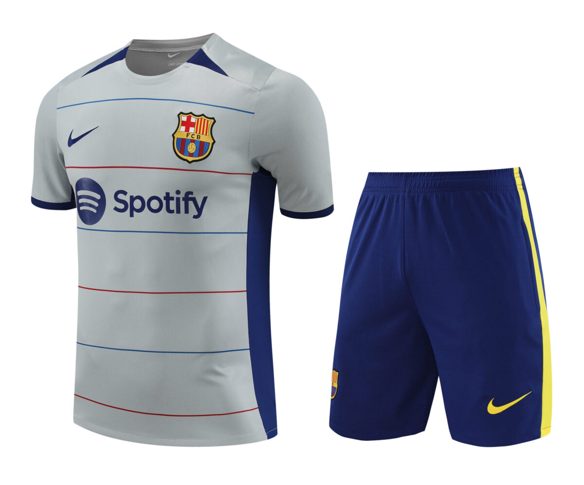 Conjunto de calentamiento FC Barcelona gris con rayas