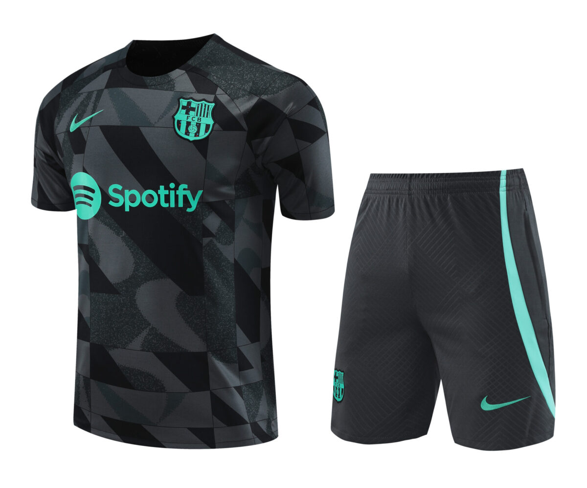 Conjunto de calentamiento FC Barcelona negro y gris manchas