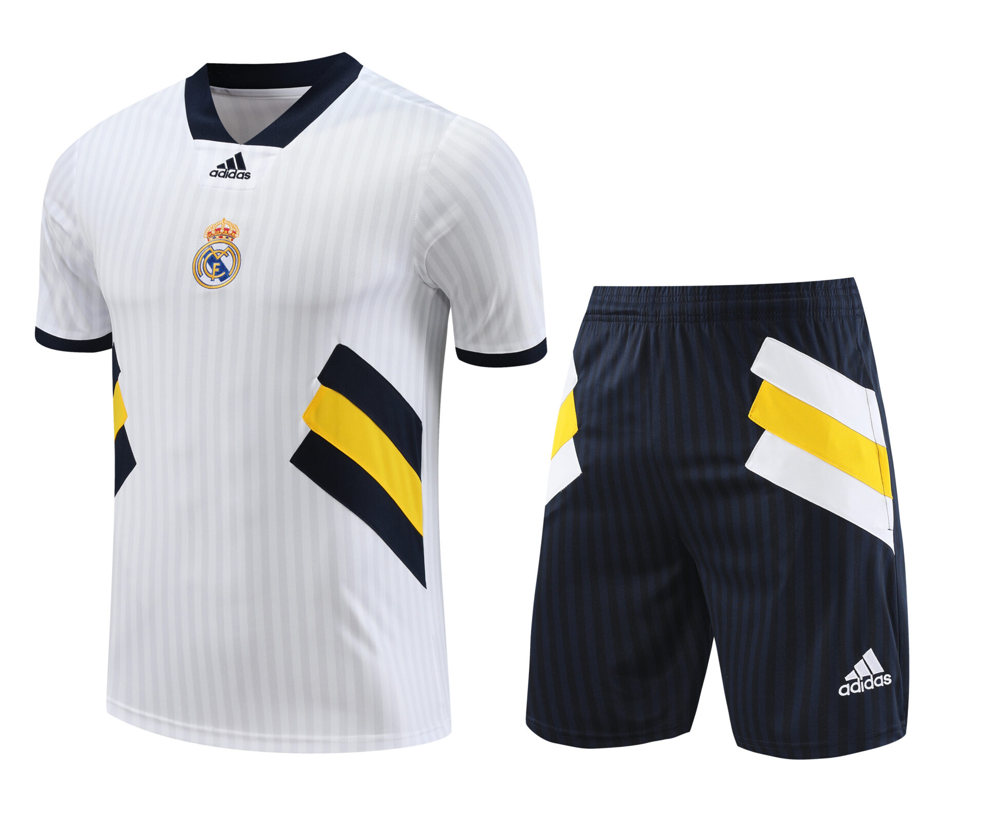 Conjunto de calentamiento Real Madrid blanco rayas