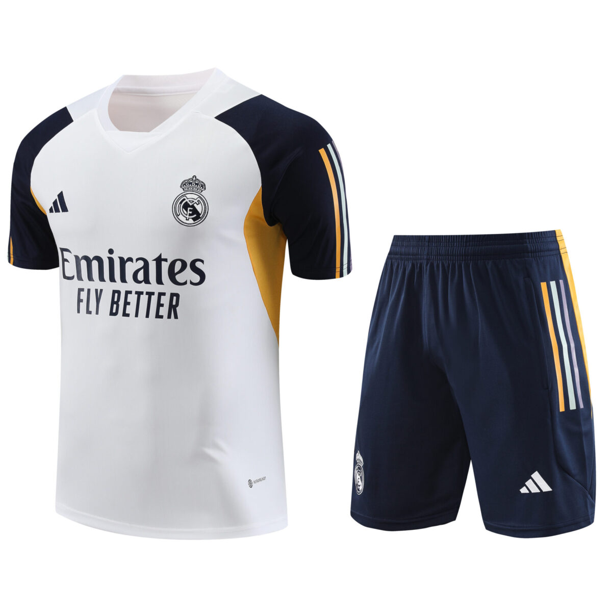 Conjunto de calentamiento Real Madrid blanco y naranja