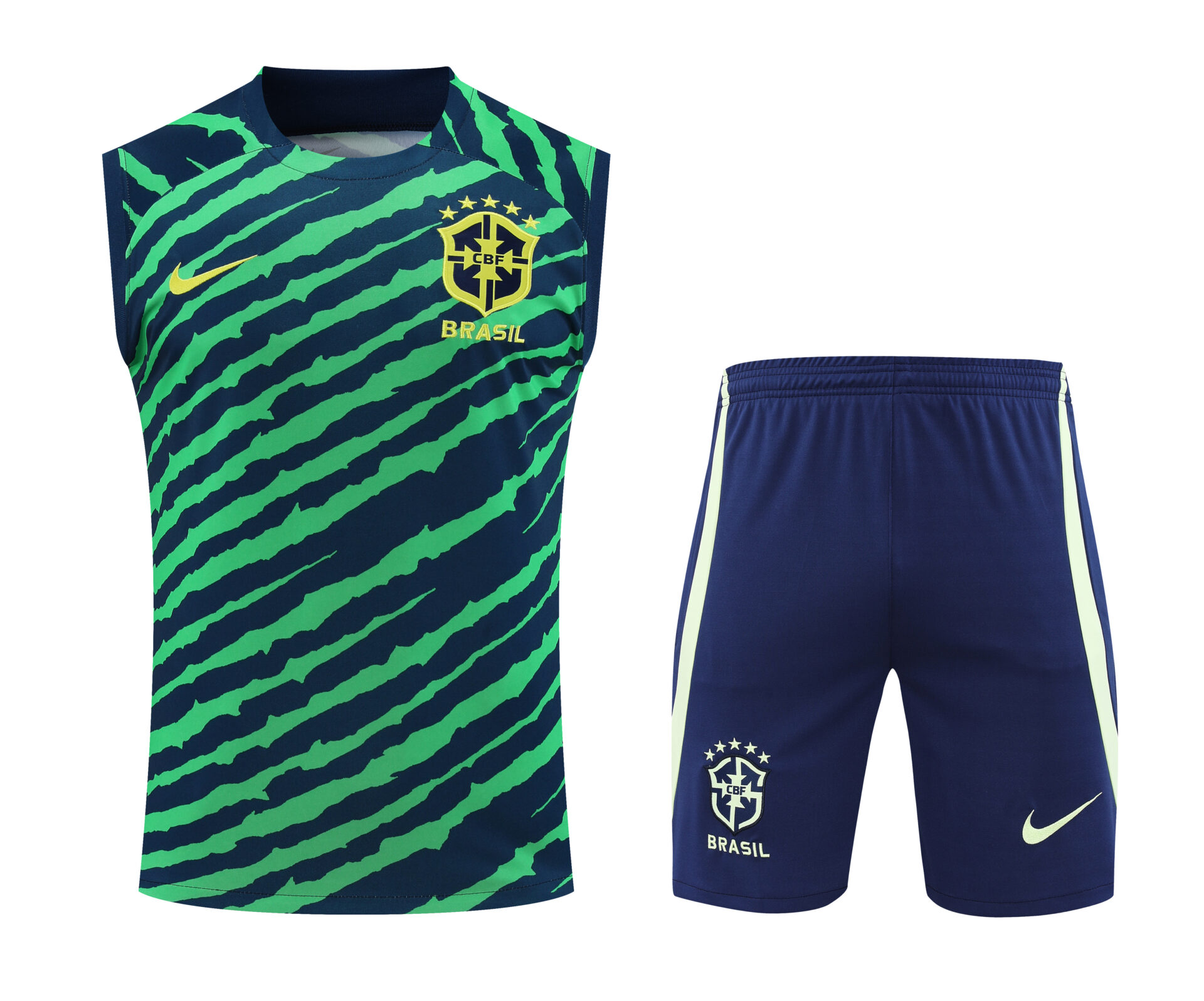 Conjunto tirantes Brasil azul oscuro y verde rayas